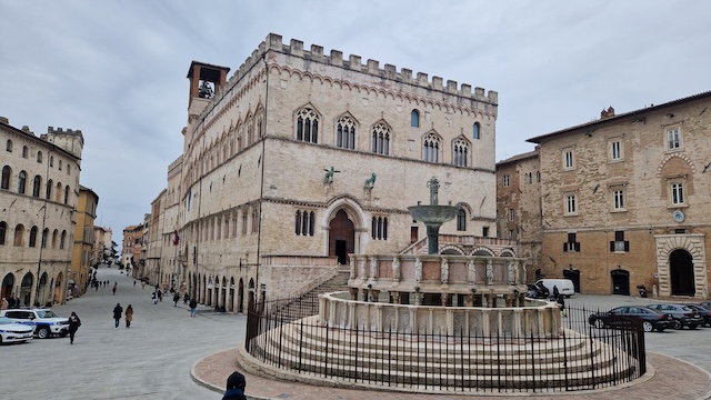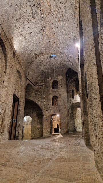 Am Folgetag machten wir eine Stadtbegehung in der wunderschönen Altstadt von Perugia, probierten Köstlichkeiten aus der Confiseriekunst, die Bacci de Perugia, in einem bekannten Cafe in der Altstadt, besuchten die Rocca Paolina, die versunkene Stadt, den Fontana Maggiore, ein großer Brunnen der die mittelalterliche Lebensgeschichte in Umbrien erzählt, wandelten über das Äquadukt zum Arco Etrusco, dem ältesten erhaltenen Gebäude in der Stadt … Zur Fahrt in die Altstadt nutzten wir die Minimetro, die uns direkt vor den Toren der Pala Barton, der Halle von Sir Sicoma Perugia, in die Altstadt beförderte.
