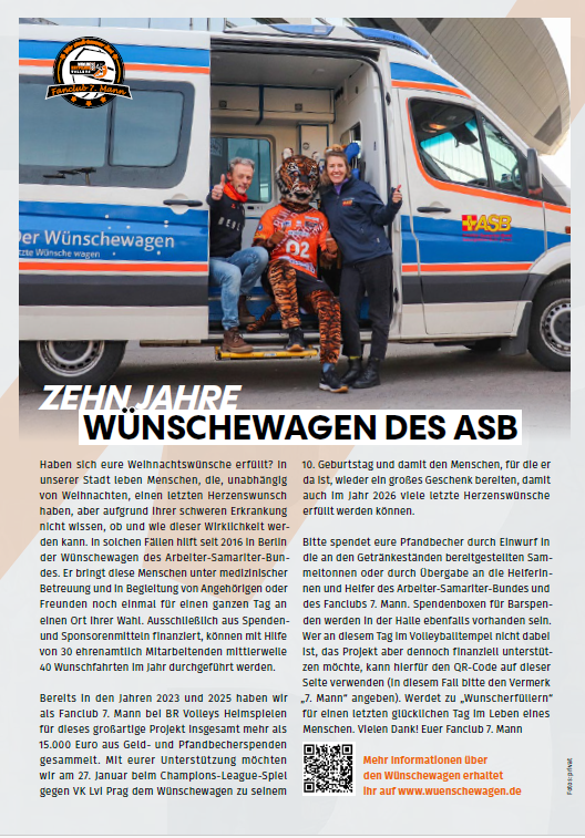 Der Fanclub 7.Mann unterstützt die großartige Einrichtung Wünschewagen des ASB. Hier engagieren sich ehrenamtlich Ärzte, Pflegekräfte und Helfer, um schwerkranken Menschen einen letzten Herzenswunsch zu erfüllen. Bereits zweimal konnten wir, […]