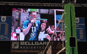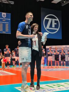 Gemeinsamer Treffpunkt war dann der „legendäre“ Italiener am Flughafen. Dort konnten wir auch unseren Manager Kaweh Niroomand und die Eltern von unserem Libero Max begrüßen. Nach einem ordentlichen Essen und ersten Einstimmungsgetränken, machten wir uns auf den Weg zur Arena. Dort konnten wir unseren Edelfan Ronny begrüßen und auch den Eltern von Moritz ein herzliches Hallo sagen. Gefreut haben wir uns auch sehr, dass sich Stelu Moculescu zu uns gesellte.