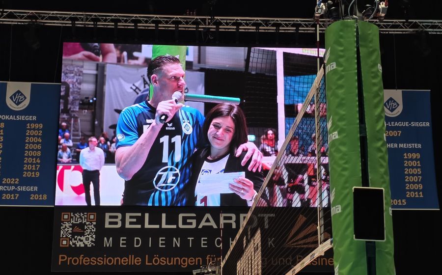 Nach dem Spiel ehrte der VfB seinen langjährigen Spieler Marcus Böhme, der seine 21jährige Profikarriere beendet. Die Ehrung und die damit verbundenen Präsente war aller Ehren wert. Auch wir schlossen uns gerne den Glückwünschen an, denn schließlich ist Marcus ein Berliner Junge und hat viele Jahre bei unserem SCC gewirkt. Eine wirklich bemerkenswerte Karriere geht zu Ende.
