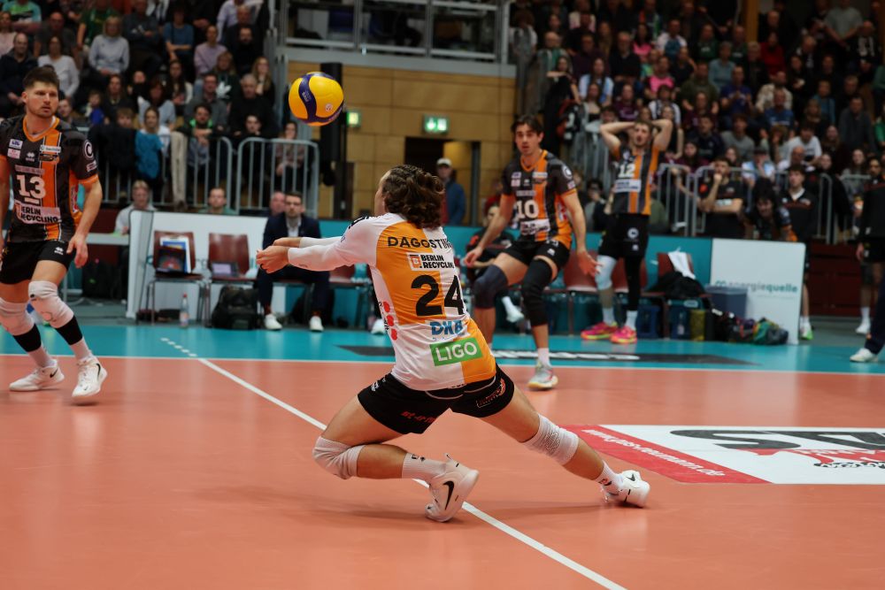Unsere Jungs legten nach etwas verpassten Beginn gut los und eine Aufschlagsserie von Nolan stellte früh die Weichen für den Satzgewinn. Im zweiten Satz hielten die Langen Kerls ordentlich mit und verschafften sich in der zweiten Satzhälfte ein Übergewicht und retteten den Satzgewinn. In der Halle wurde nun fortan auf das Playoff Geschehen im letzten Jahr verwiesen, aber weit gefehlt, unsere Jungs ließen nichts mehr anbrennen. Satz 3 und 4 gingrn deutlich nach Berlin. Somit können wir ganz entspannt auf unseren Halbfinalgegner schauen und hoffen, dass die Rückkehr der beiden Langzeitverletzten einen zusätzlichen Schub im Playoff Geschehen für unser Team nach sich zieht.