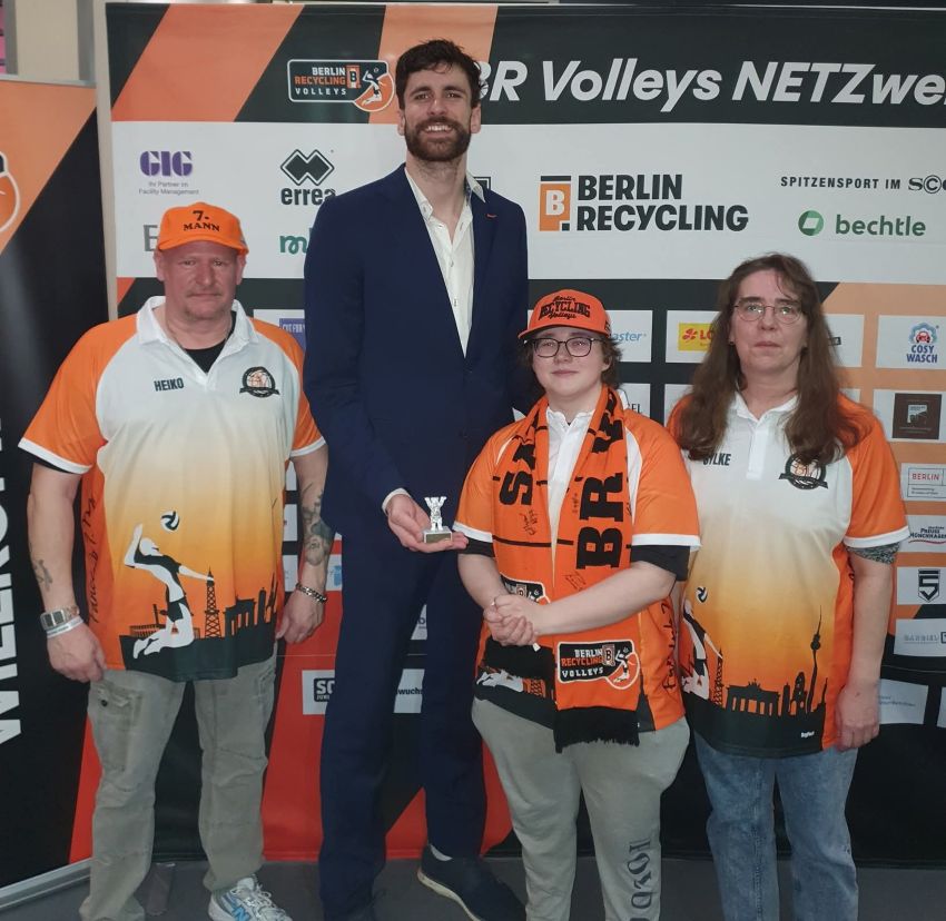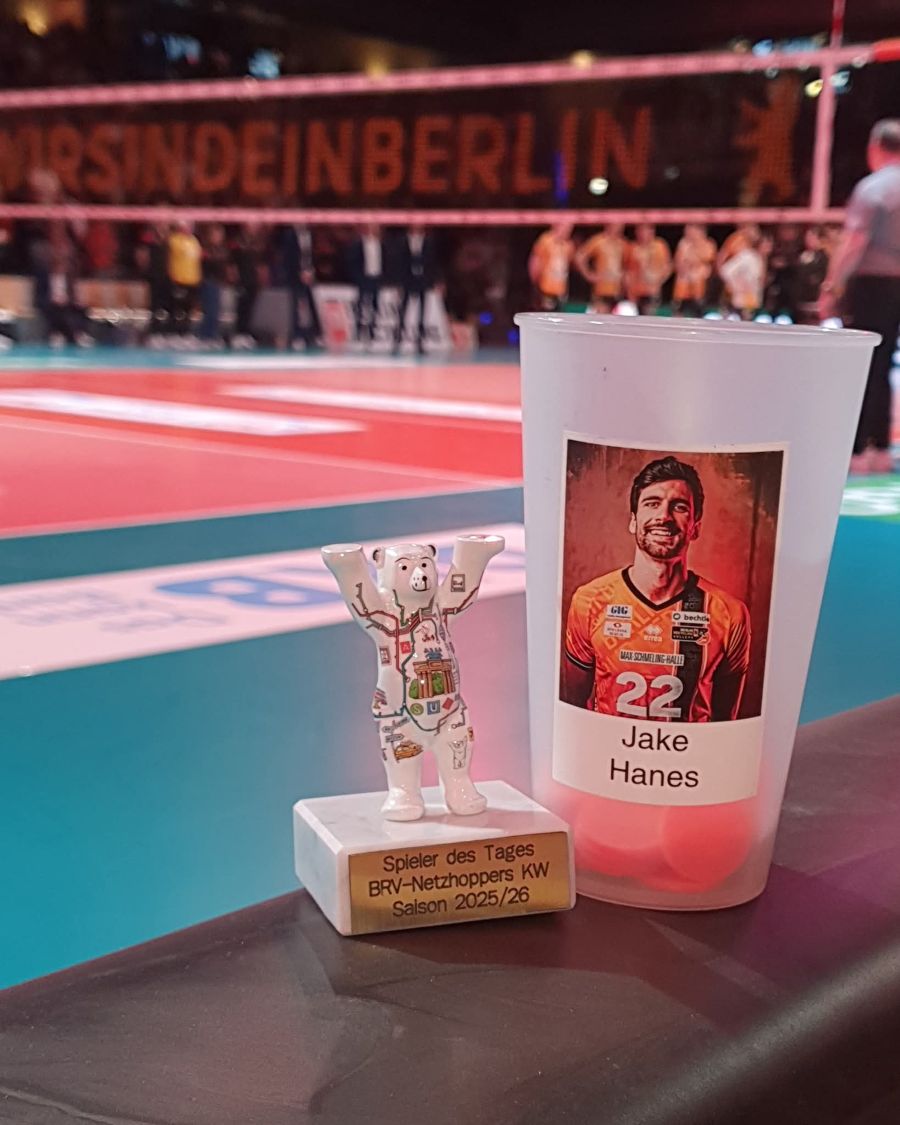 Zeitweise hatten unsere Jungs eine starke Gegenwehr, aber letztendlich war es ein souverän erkämpfter Sieg. Als MVP ging heute in der Tat nichts an Jake vorbei. Sowohl beim Votum der Fernsehzuschauer, wie auch bei der Abstimmung in der BRV-App, waren auch die Mitglieder des 7.Mann mehrheitlich für unseren Diagonalangreifer. Unsere neuen Mitglieder Sylke, Heiko und James waren die Überbringer unseres MVP-Bärchens.