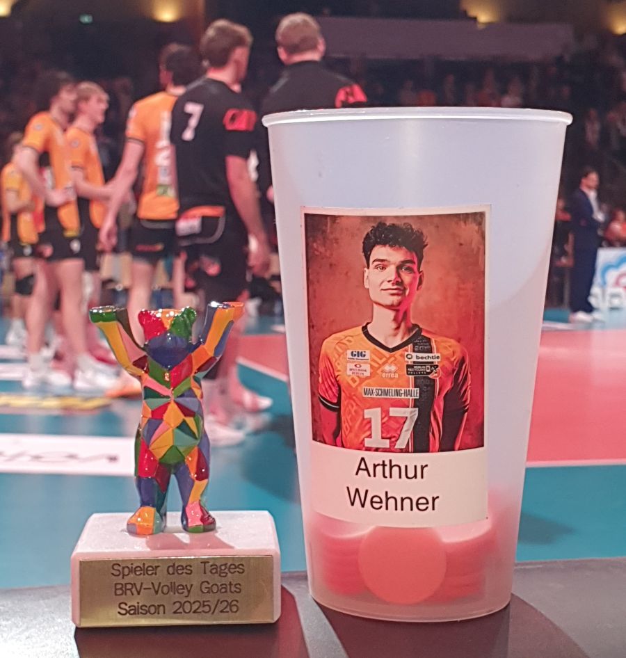 Unser Zuspieler Arthur war heute von Beginn an der Dirigent. Und er legte ein tolles Spiel hin. Er wurde nicht nur von den Fernsehzuschauern und von den BRV App Nutzern als bester Spieler gewählt, sondern auch bei uns war er klarer Abstimmungssieger.