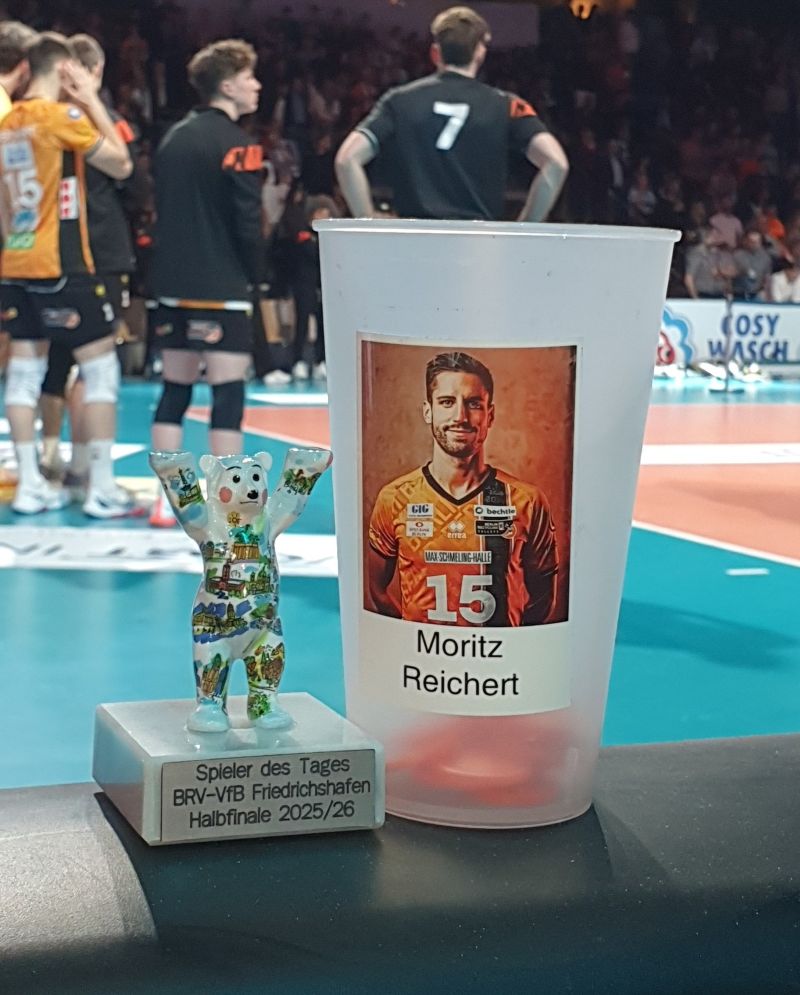 Es war heute ein souveräner Einzug in das Finale. Aus einer großartigen Mannschaftsleistung, ragte für uns heute Moritz etwas heraus. Das verdiente Bärchen erhielt er durch Liam von unserem Kooperations-Fanclub YoungBlockerz, unterstützt von unserer Silvana.