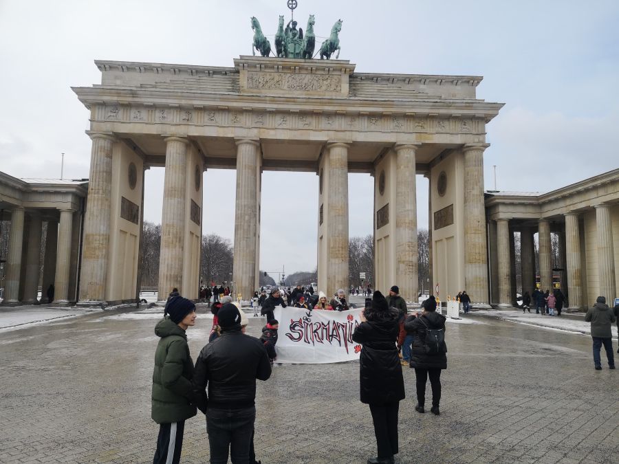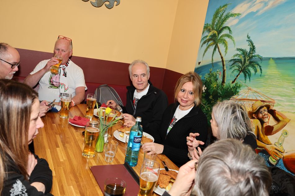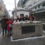 Am Mittwochvormittag dann die Hiobsbotschaft, der gebuchte Besuch der Reichstagskuppel, der eigentliche Höhepunkt des Sightseeing Tages, wurde abgesagt, da die Kuppel aufgrund des neuerlichen Wintereinbruchs geschlossen blieb. Berlin kann Winter. Wir beließen es jedoch bei unserem festen Zeitplan, d.h. Fotoshooting am Checkpoint Charlie, über den Außenbereich des Ausstellungsgeländes der Topographie des Terrors (ebenfalls wegen des Wetters nicht zugänglich), passierten wir den Martin Gropius Bau und das Abgeordnetenhaus zum Potsdamer Platz. Dort besuchten wir neben den Mauergedenksteinen den verschobenen Kaisersaal und konnten die Verschiebung noch als Zeitraffervideo bestaunen. Weiter ging es dann über das Holocaust-Mahnmal, der Gedenkstätte der ermordeten Sinti und Roma, und nach einer Aufwärmpause im Futurium zur Gedenkstätte Berliner Mauer und dann entlang der Bernauer Straße, weiter aufwärts Richtung unseres Volleyballtempels. Ein kleiner Zwischenstopp im Hotel um Fan-angepasst dann weiterzuziehen, führte uns der Weg in unser Stammlokal Meta. Dort trafen wir dann auf die zweite Gruppe und auf einige weitere Fans des 7. Manns.