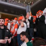 im Fanblock unserer Gäste. Wir verteilten Hüte und Käppis in Orange und versorgten sie mit unseren Fanschals.