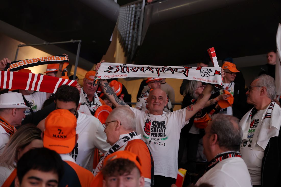 Im Anschluss an das Spiel ließen wir den Abend in unserer Fanecke im Foyer des VIP-Raumes gemeinsam ausklingen. Trotz der Niederlage und des knappen Ausscheidens aus der Champions League, wirklich schlechte Stimmung kam bei uns nicht auf. Ganz offensichtlich genossen unsere italienischen Freunde den Aufenthalt, zwei der Sirmaniaci beteiligten sich  bei der Übergabe der MVP Prämie an Kyle Dagostino und wir wurden von den Sirmaniaci mit deren Megaphon beglückt. Gemeinsame Fotos waren obligatorisch. Die weitere Planung des Folgetags wurde noch kurz umrissen, dann trennten sich unsere Wege nach einem langen Tag, mit dem Wissen, dass wir im CEV Cup auf ein anderes italienisches Team, der sicherlich ebenso starke Mannschaft aus Piacenza treffen werden.