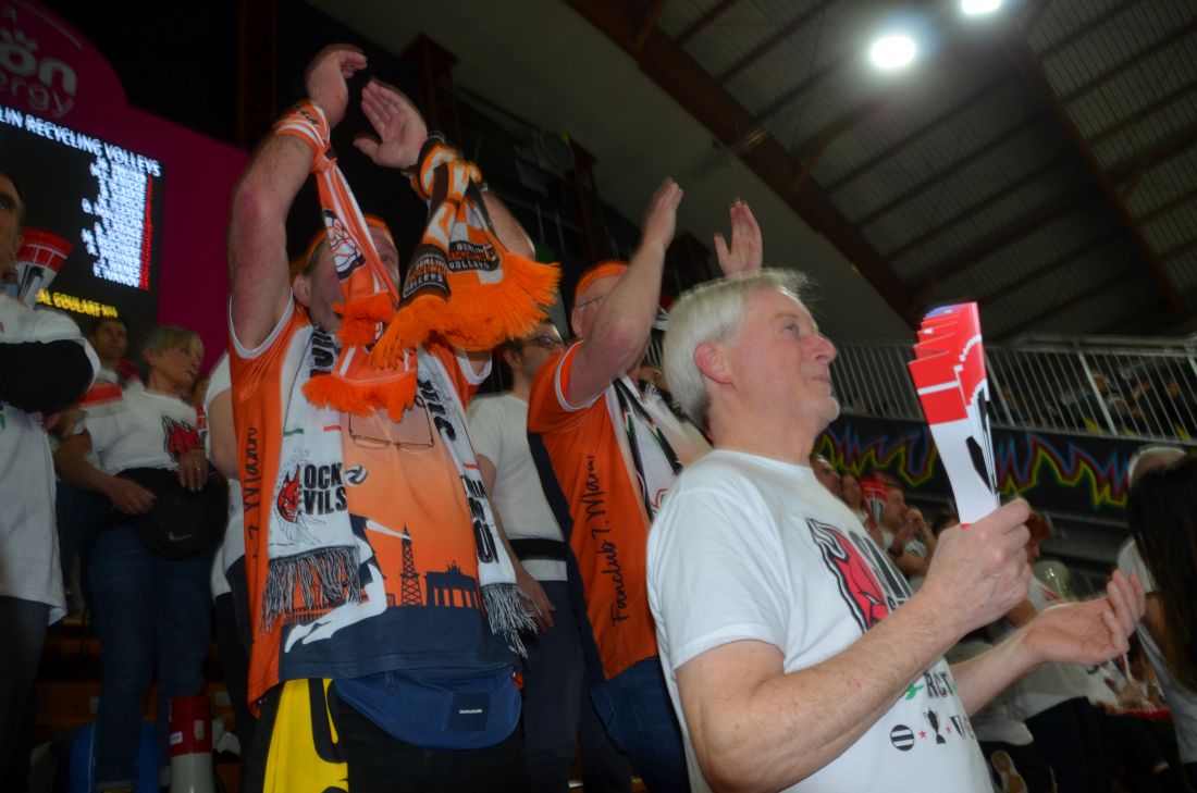 Am Spieltag wurden wir dann in den VIP Raum gebeten, hatten dort eine kleine Ecke für uns, mit allen möglichen Getränken ausgestattet, und lernten dort auch den Vereinspräsidenten und dem Verantwortlichen des Hauptsponsors kennen. Die Satzpause nutzten wir, den Sirmaniaci einen Besuch abzustatten. Zuvor wurde uns eine Trommel und ein Megaphon für unseren Support bereitgestellt, die wir im 2. Satz jedoch nicht benötigten. Wir wurden eingeladen bei Ihnen zu bleiben, was wir gerne annahmen und plötzlich waren wir phasenweise am Hallenmikrofon. Nach dem Spiel gab es eine liebevolle Verabschiedung und einige der Sirmaniaci brannten schon darauf, uns in Berlin zu besuchen.