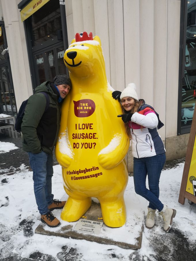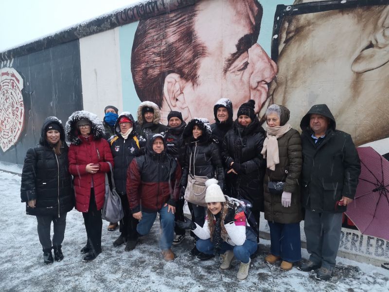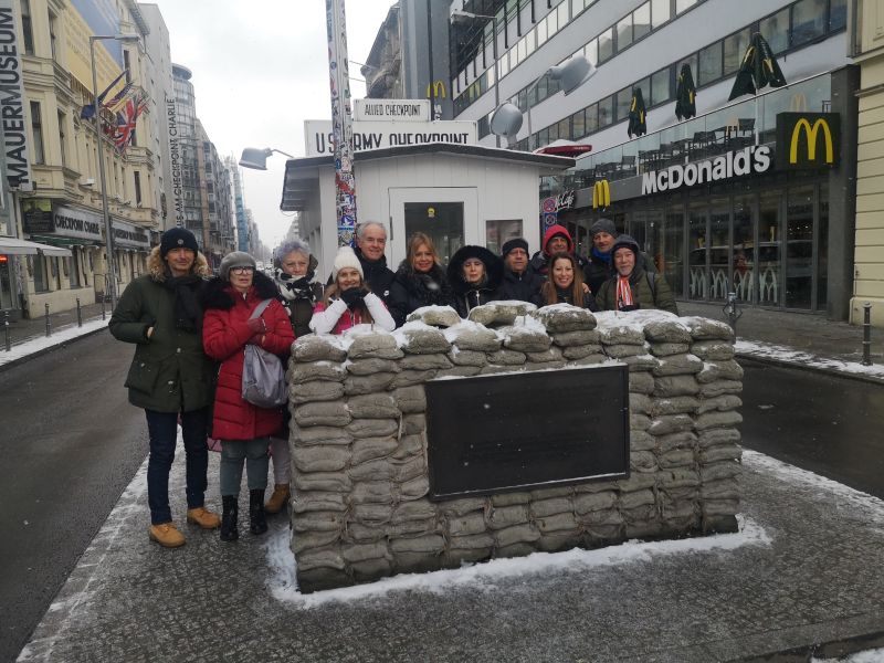 So begann dann ein Sightseeing durch Berlin am späten Nachmittag des Dienstags bei Schneefall, nicht unbedingt dem Wetter in Perugia entsprechend. Eingemummelt besuchten wir die East Side Gallery, schlenderten auf dem Alex entlang der Weltzeituhr, dem Fernsehturm, weiter Richtung Neptunbrunnen und entlang des Doms und des Lustgartens bis zum Gendarmenmarkt. Die große Gruppe hatte sich ein Hotel am Rosenthaler Platz ausgesucht, den Abend ließen wir dort dann auch austrudeln.