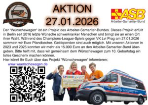 Der Fanclub 7.Mann unterstützt die großartige Einrichtung Wünschewagen des ASB. Hier engagieren sich ehrenamtlich Ärzte, Pflegekräfte und Helfer, um schwerkranken Menschen einen letzten Herzenswunsch zu erfüllen. Bereits zweimal konnten wir, mit der großartigen Unterstützung des Berliner Publikums, erfolgreich Sammelaktionen in der Max-Schmeling-Halle durchführen. Dabei konnten wir insgesamt weit mehr als 15.000 Euro dem Projekt zur Verfügung stellen.