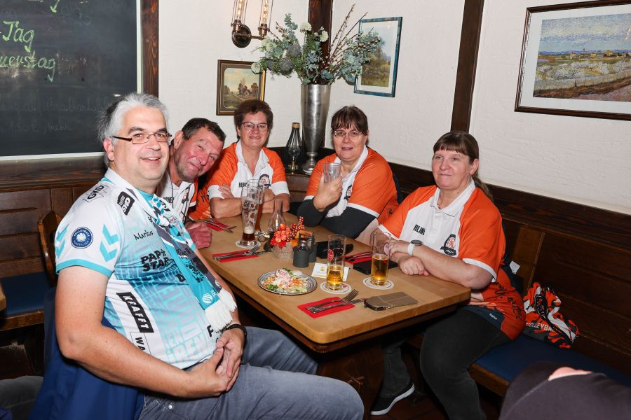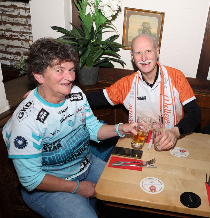 Ganz so viel Tradition haben wir mit den Moskitos noch nicht erreicht, doch die Fanfreundschaft zwischen dem 7.Mann und unserem Pendant bei den Powervolleys hat durchaus schon Legendenstatus. Deswegen machten sich ein gutes Dutzend Fans des 7.Manns auf den Weg an die Rur, Treffpunkt zur Einstimmung mit den Moskitos war wie immer das Alt-Düren in der Innenstadt. Der hintere Teil des Alt-Dürens war bereits gut gefüllt, hatten sich da bereits Familie und Freunde von Simon Plaskie eingefunden. Unsere Stammkellnerin entschuldigte sich dafür, dass sie heute leider anderweitig beschäftigt ist und sich nicht um unser Wohl kümmern könne. Der Ersatzmann gab aber sein Bestes.
